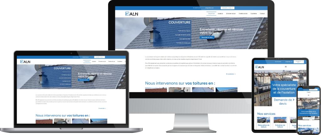 Création d’un site vitrine – Gestion des réseaux sociaux ALN Un site vitrine pensé pour présenter clairement les prestations, valoriser les chantiers et faciliter la prise de contact (devis / rendez-vous). Contexte ALN est spécialisée dans la couverture et l’isolation, en Île-de-France et au niveau national. L’objectif : disposer d’un site vitrine permettant aux clients […]